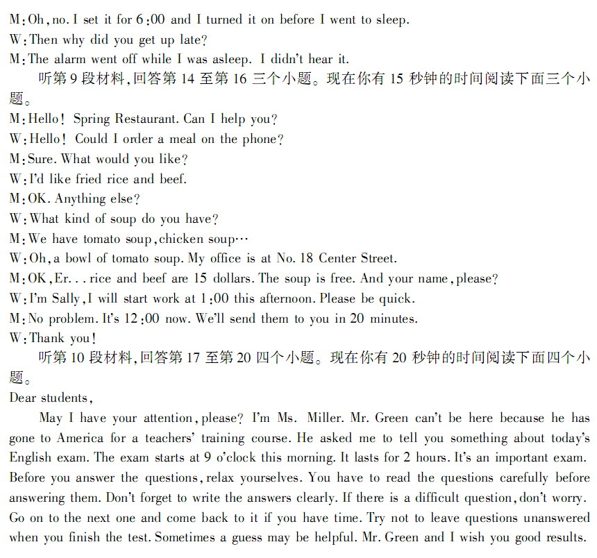 听第9段材料,回答第14至第16三个小题。现在你有15秒钟的时间阅读下面三个小题。