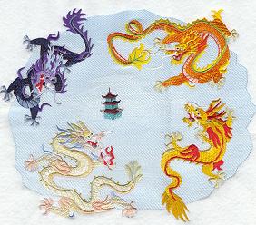 one day the four dragons flew from the sea into the sky. they soared and dived, playing at hide-and-seek in the clouds.